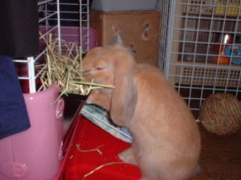 我家に来て一ヶ月(生後3ヶ月)くらいは、アルファアルファという、豆科の牧草を中心にあげていました。 |
