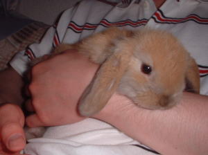 この頃はまだ大人しく抱かれていものの、近頃はもがくみかん。抱き方によっては、うさキックを見舞う恐れも?上手に抱きあげてホールドしてしまえばかっちのもの♪頭なんぞを撫で撫でしてあげれば、すっか騙されてしばらくは大人しく抱かれています。でも、やっぱり好きではなさそう? |
