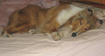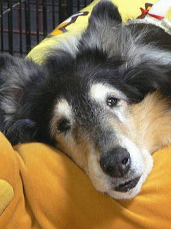 その後数年間は犬を飼うことができずにいた両親を説得して、次に迎えたのが先代の雄のコリーで、彼は11歳目前まで病気という病気をすることも無いまま、ある日を境に足腰が弱り、一週間足らずで電池が切れたかのようにリラックスポーズのまま亡くなっていました。さすがに、もう一生犬は飼わないつもりでいたのですが、結婚して家を購入したのを期に家族が飼いたいというので再び犬を飼うこととなり、私に犬種の選択権が与えられたので、迷わずコリーを選びました。コリーは、一度飼うと忘れられない犬なのです。