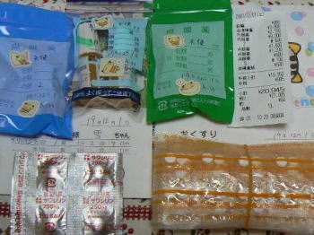 もちろん、体調にも波があり、人間の老人同様に、あちらこちらと悪いところが出てきます。茶々ちゃんもエンジェルちゃんも、発作や痙攣、膀胱炎etc・・・色々な故障が起きているようです。ですから、医療費も大変、お薬の量も大量です。 |
